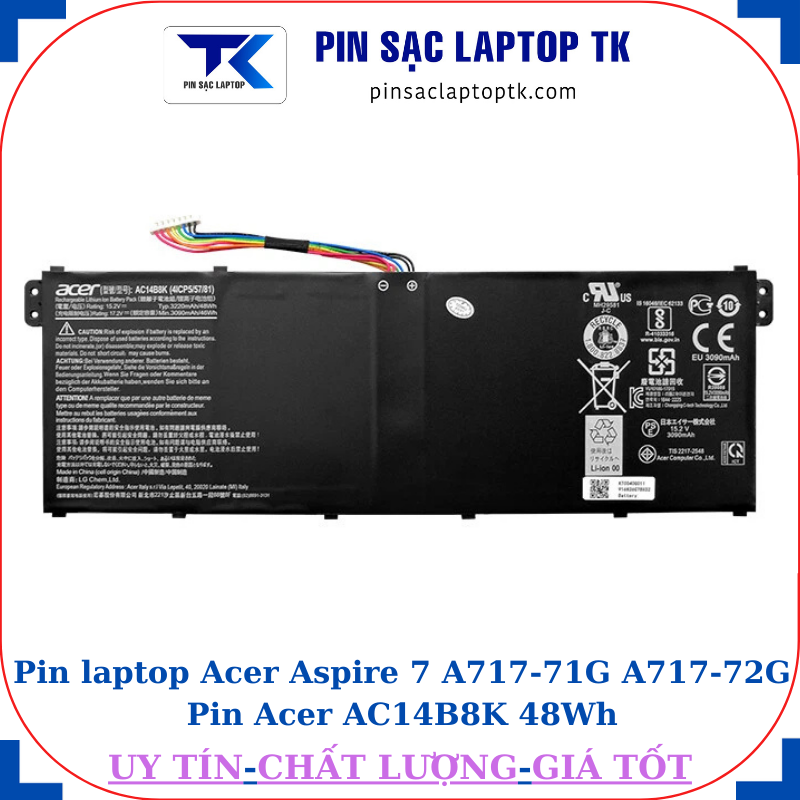 * Thông số kỹ thuật Pin Acer Aspire 7 A717-71G A717-72G Pin Acer AC14B8K 48Wh: