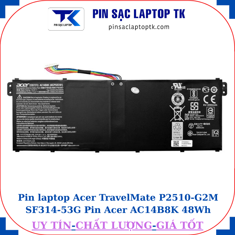 * Thông số kỹ thuật Pin Acer TravelMate P2510-G2M SF314-53G Pin Acer AC14B8K 48Wh:
