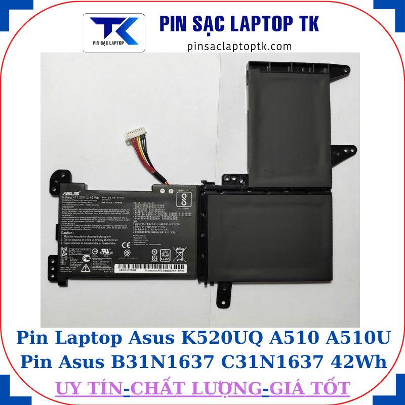 Pin Asus K520UQ A510 A510U Pin Asus B31N1637 C31N1637 42Wh