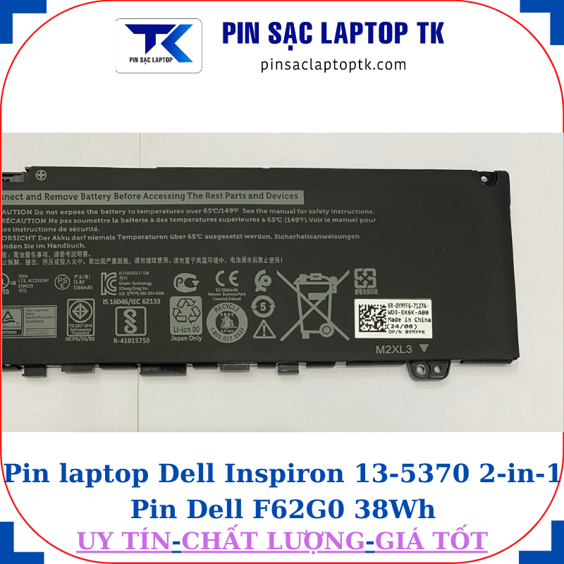 * Thông số kỹ thuật Pin Dell Inspiron 13-5370 2-in-1 Pin Dell F62G0 38Wh: