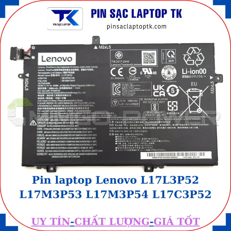 * Thông số kỹ thuật Pin Lenovo L17L3P52 L17M3P53 L17M3P54 L17C3P52: