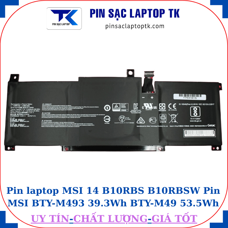 * Thông số kỹ thuật Pin MSI Modern 14 B10RBS B10RBSW Pin MSI BTY-M493 39.3Wh BTY-M49 53.8Wh: