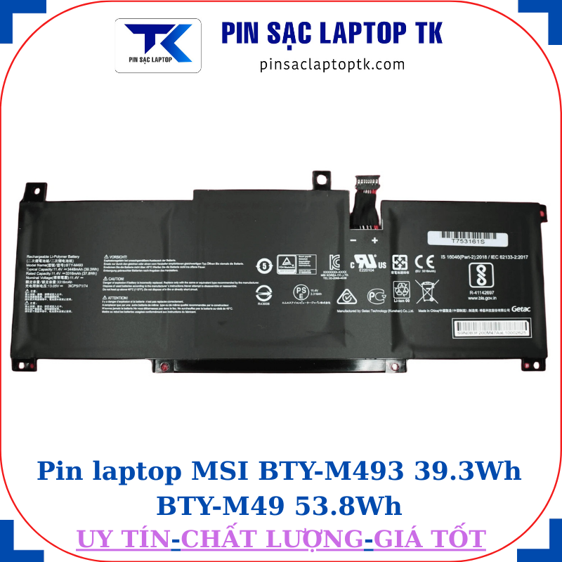 * Thông số kỹ thuật Pin MSI BTY-M493 39.3Wh BTY-M49 53.8Wh: