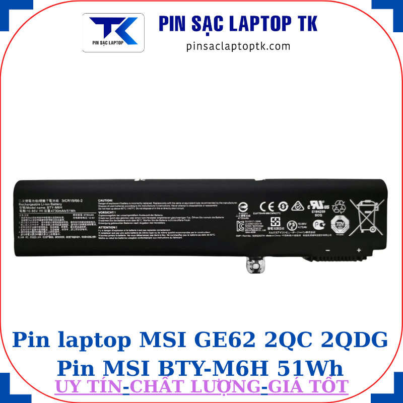 * Thông số kỹ thuật Pin MSI GE62 2QC 2QDG Pin MSI BTY-M6H 51Wh: