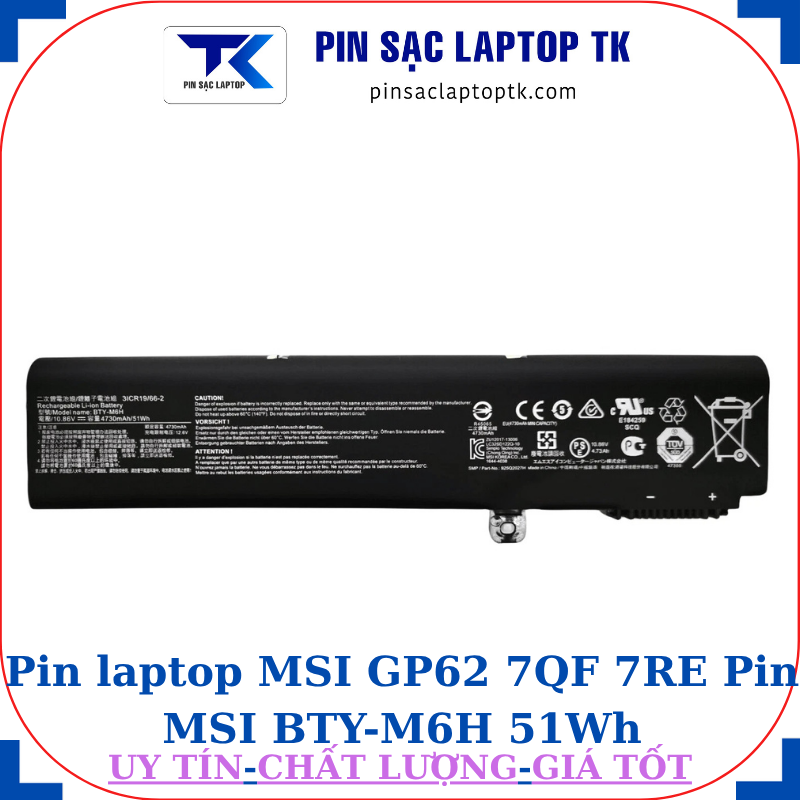 Pin laptop MSI GP62 7QF 7RE