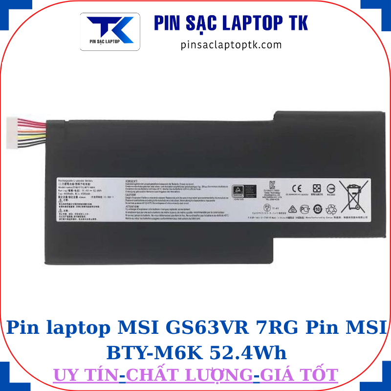 * Thông số kỹ thuật Pin MSI GS63VR 7RG Pin MSI BTY-M6K 52.4Wh:
