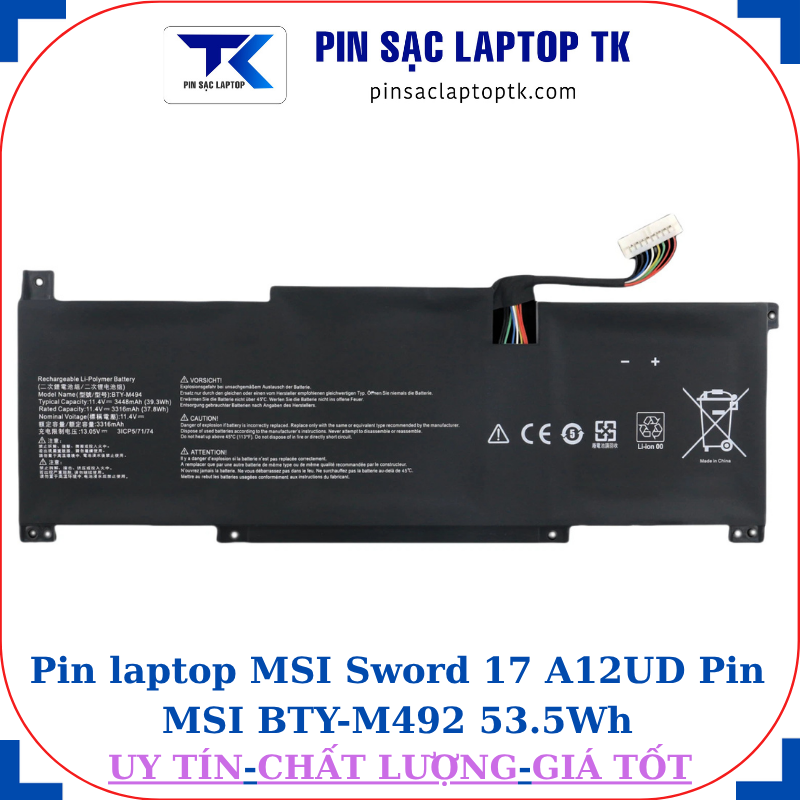 * Thông số kỹ thuật Pin MSI Sword 17 A12UD Pin MSI BTY-M492 53.5Wh: