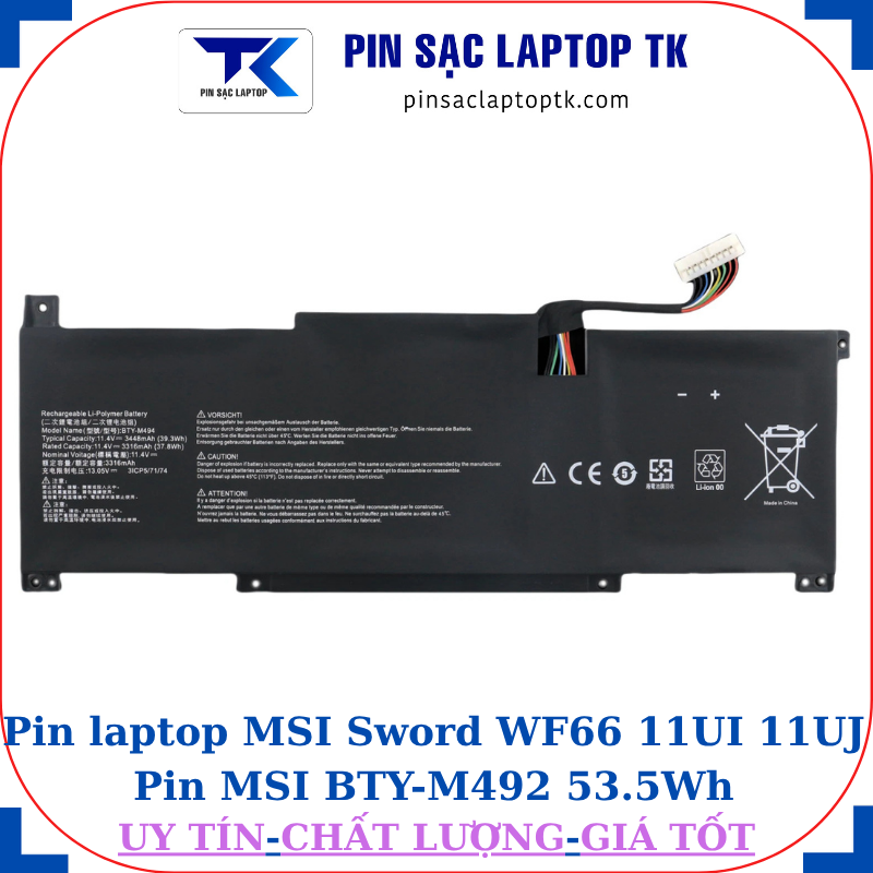 * Thông số kỹ thuật Pin MSI Sword WF66 11UI 11UJ Pin MSI BTY-M492 53.5Wh: