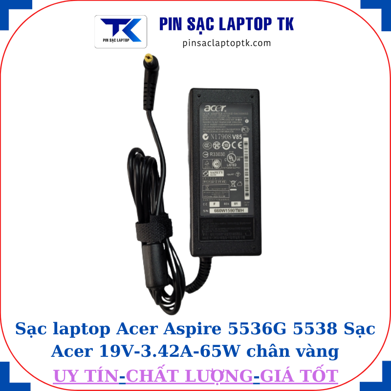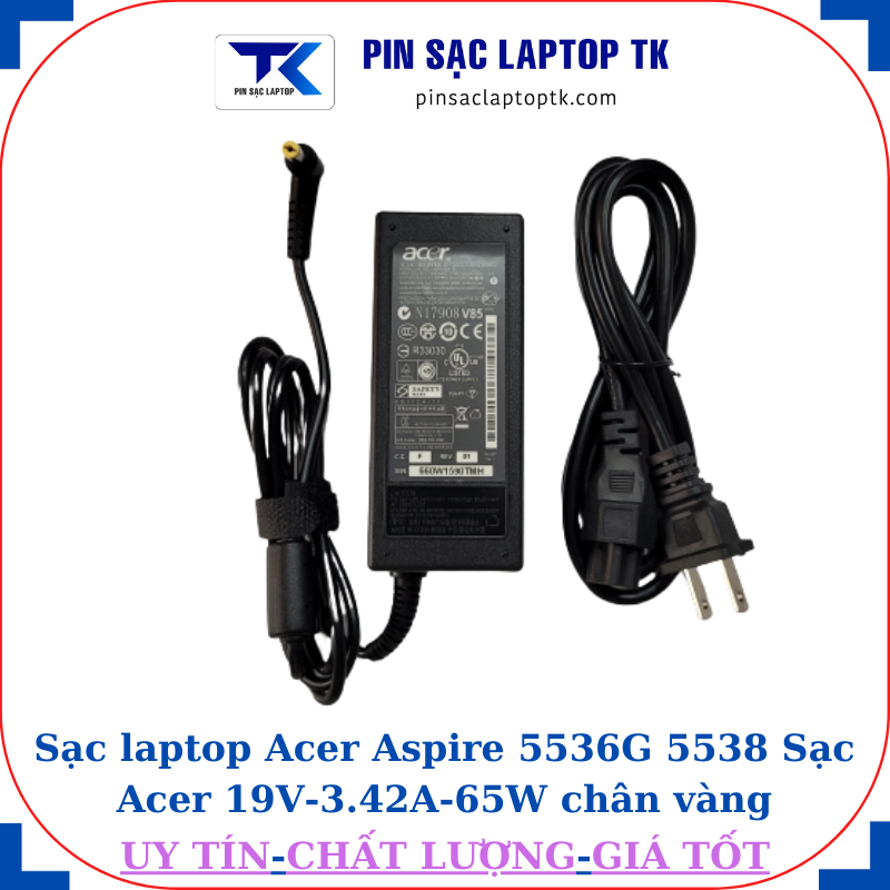 Sạc laptop Acer Aspire 5536G 5538 Sạc Acer 19V-3.42A-65W chân vàng 5.5mm*1.7mm