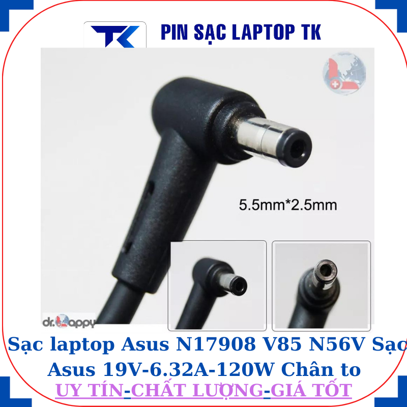 * Hướng dẫn sử dụng Sạc laptop Asus N17908 V85 N56V Sạc Asus 19V-6.32A-120W Chân to 5.5*2.5mm: