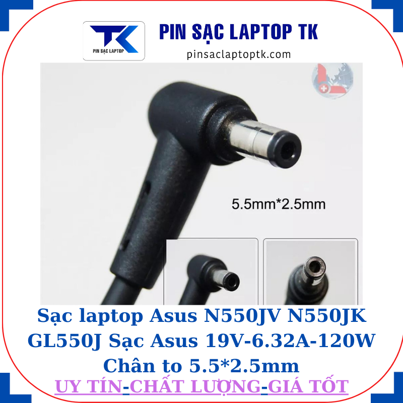 * Shop cam kết sản phẩm Sạc laptop Asus N550JV N550JK GL550J Sạc Asus 19V-6.32A-120W Chân to 5.5*2.5mm:
