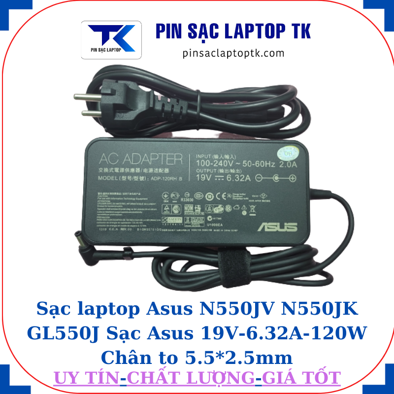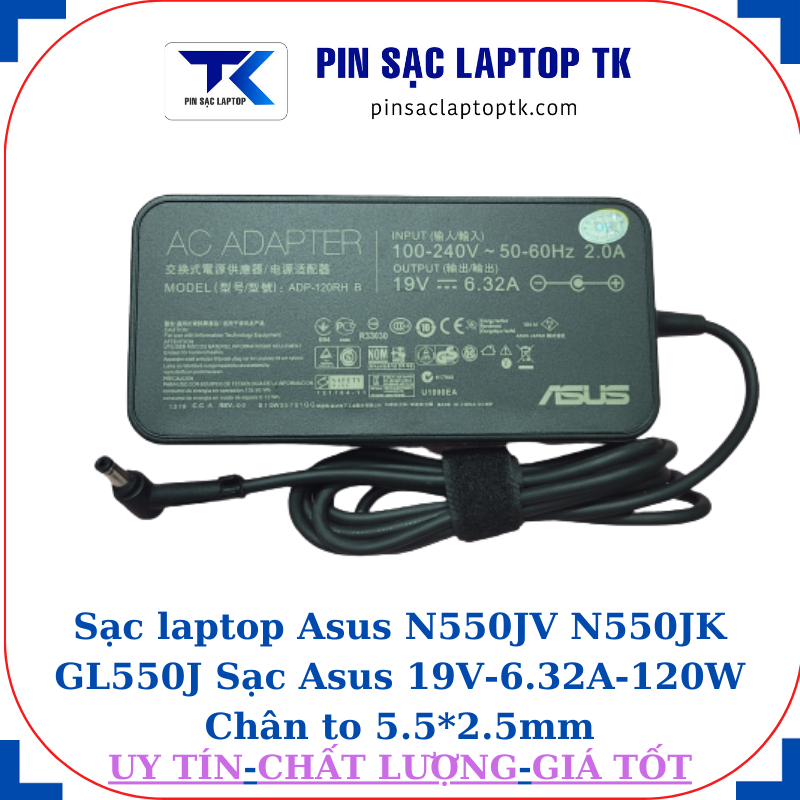Sạc Asus N550JV N550JK GL550J Sạc Asus 19V-6.32A-120W Chân to 5.5*2.5mm