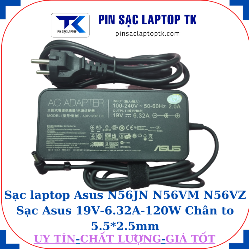 Sạc Asus N56JN N56VM N56VZ Sạc Asus 19V-6.32A-120W Chân to 5.5*2.5mm
