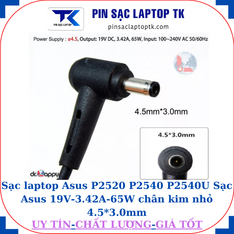 * Thông số kỹ thuật Sạc Asus P2520 P2540 P2540U Sạc Asus 19V-3.42A-65W chân kim nhỏ 4.5*3.0mm:
